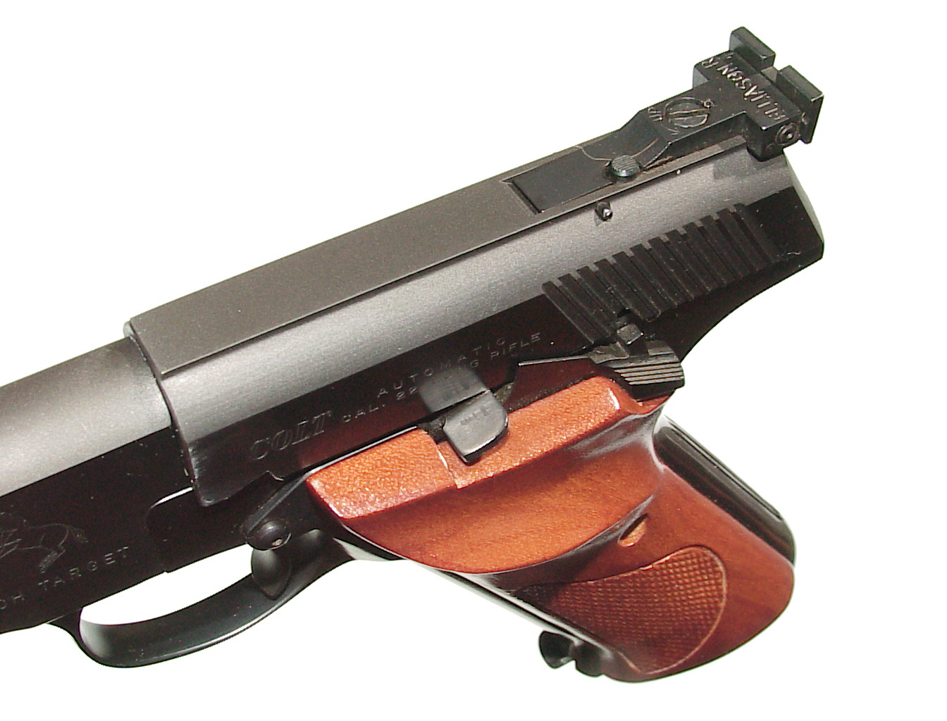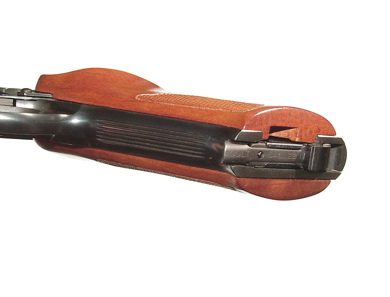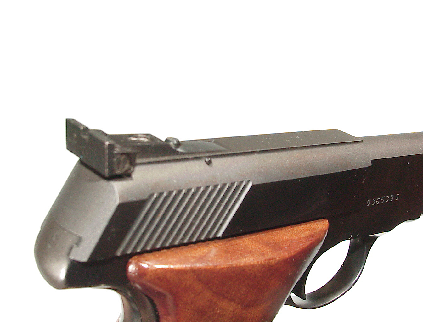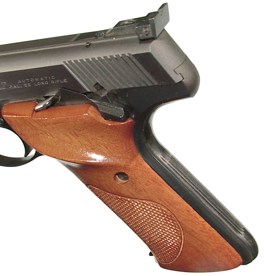 .22 rimfire, 6″ heavy barrel, semi-auto with adjustable rear sight. Finished blue with checkered walnut factory target grips. In new, unused original condition retaining 100% blue, mint bore and grips. In it’s factory box with label and correct paperwork. All in as new condition. This is the best conditioned example I have had. 1969 mfg.