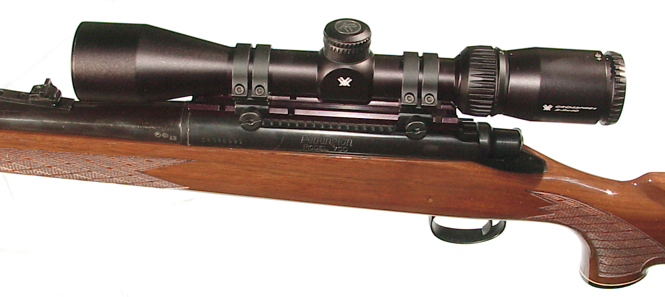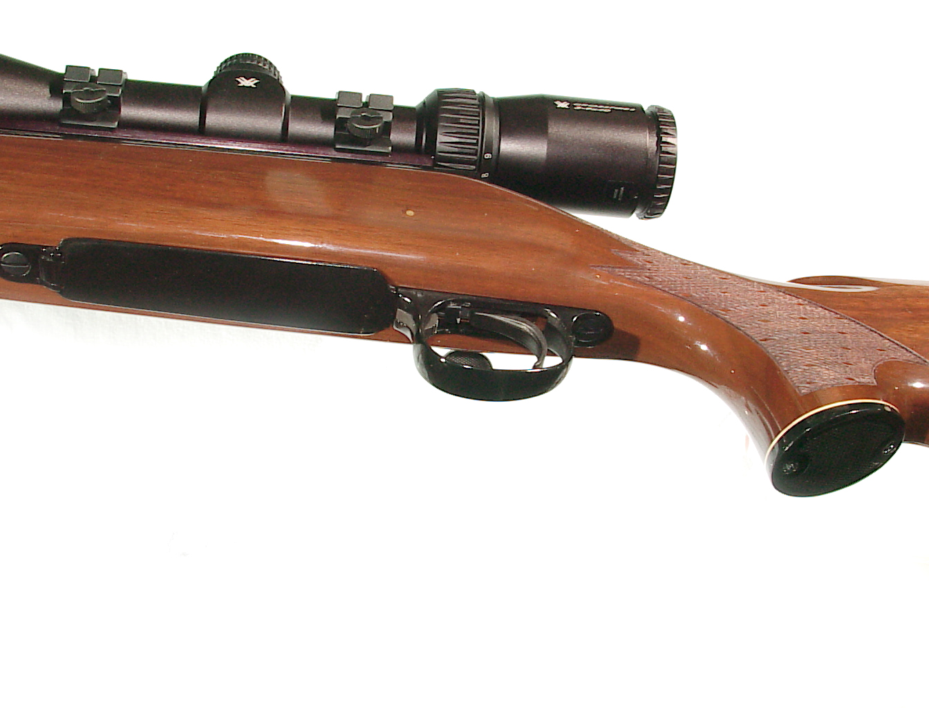 7mm Remington magnum caliber. 24″ barrel with factory open sights and topped with a Vortex Optics 3×9 40 variable scope. Hinged floorplate. Checkered walnut pistol grip stock with cheekpiece and ebony type forend & pistol grip caps. LOP: 13 1/2″ over a Remington factory hardrubber pad. In super original condition retaining all of the blue, minty wood, perfect bore and excellent scope optics. mfg 12/77