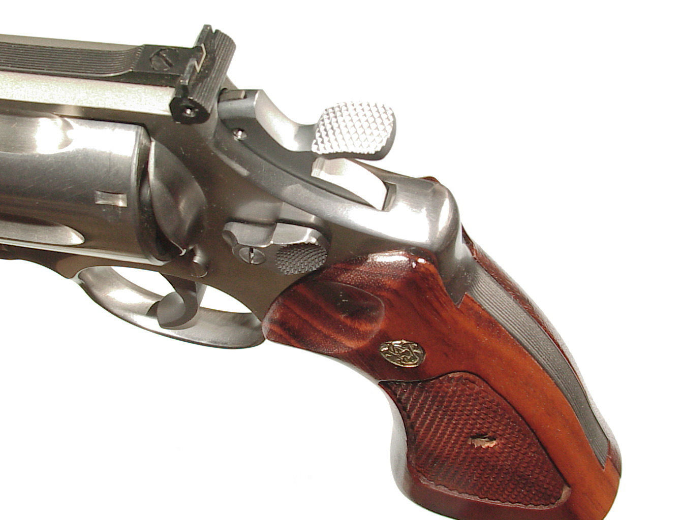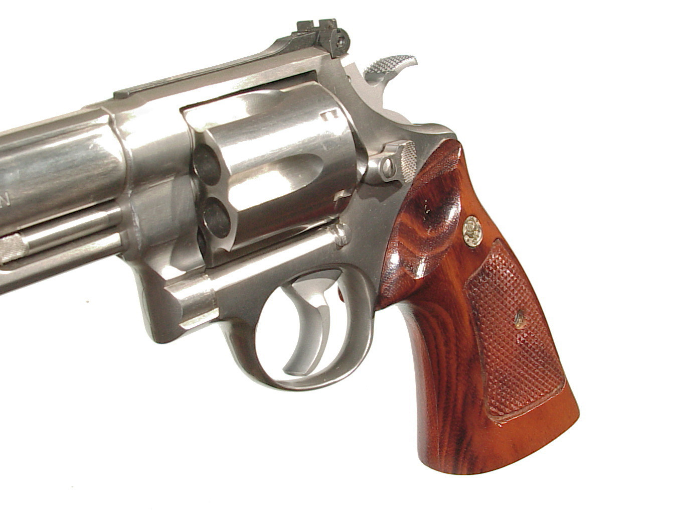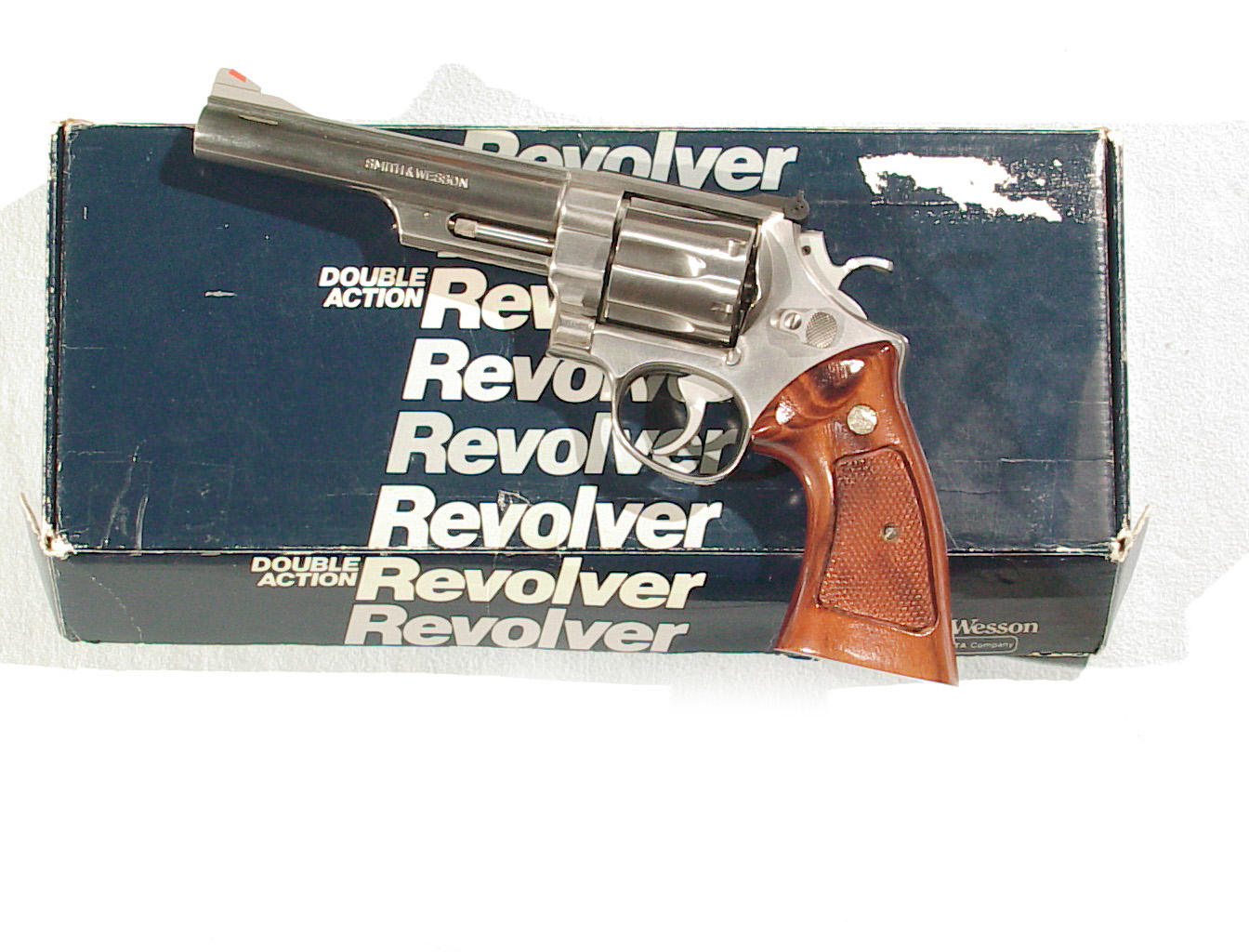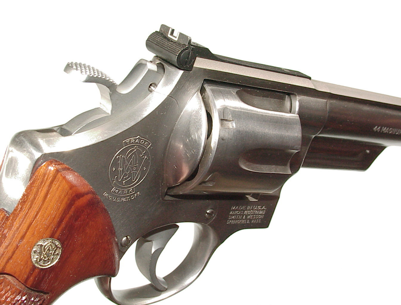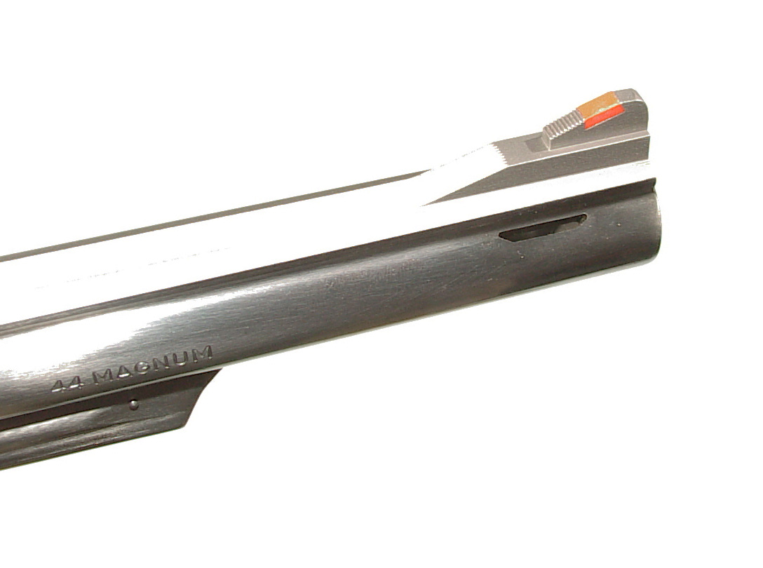 .44 magnum, 6″ barrel, STAINLESS STEEL construction, target trigger & hammer. Factory target medallion grips. Ported barrel. In as new and what appears to be unfired condition. In it’s factory box with paperwork.