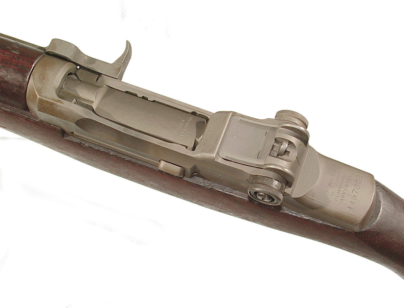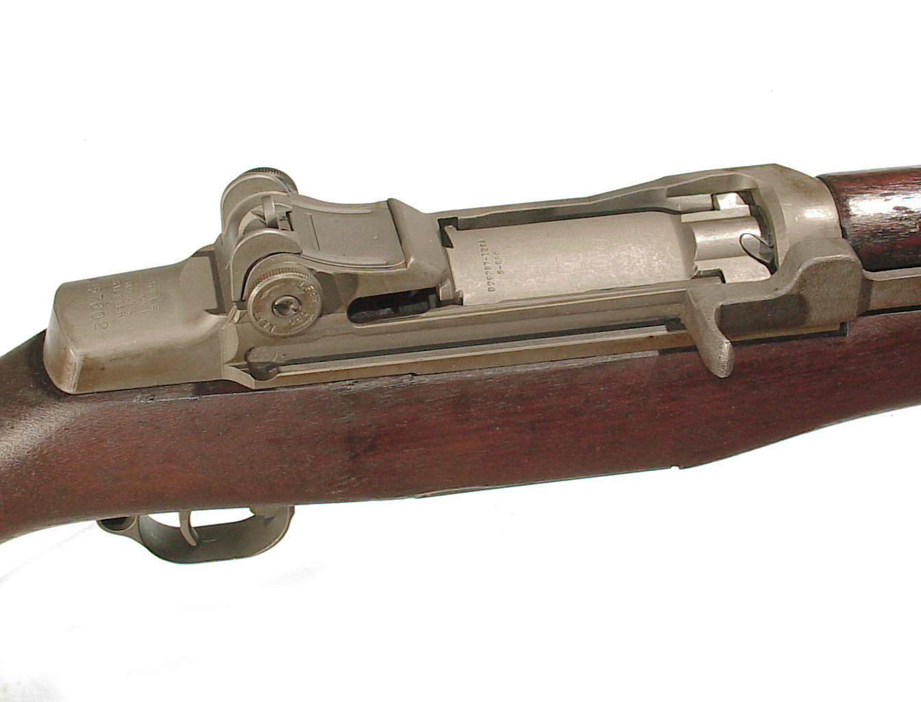 .30-06 caliber, semi-auto action loaded through the top with an 8 round clip. Adjustable rear receiver sight, full stock with handguard. Parkerized finish overall. In unissued condition retaining all of the parkerized finish with very sharp stamping. Excellent wood. Korean War production. Appears to be a DCM sale rifle and is accompanied with it’s shipping box with inserts. Label indicates it was shipped form the Anniston Depot.