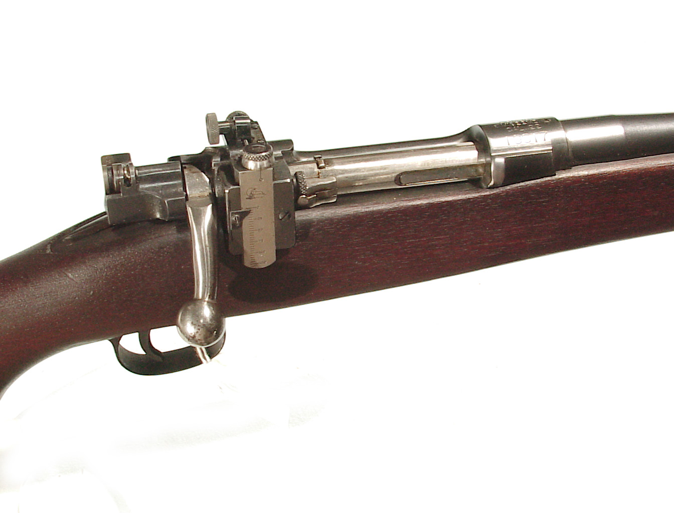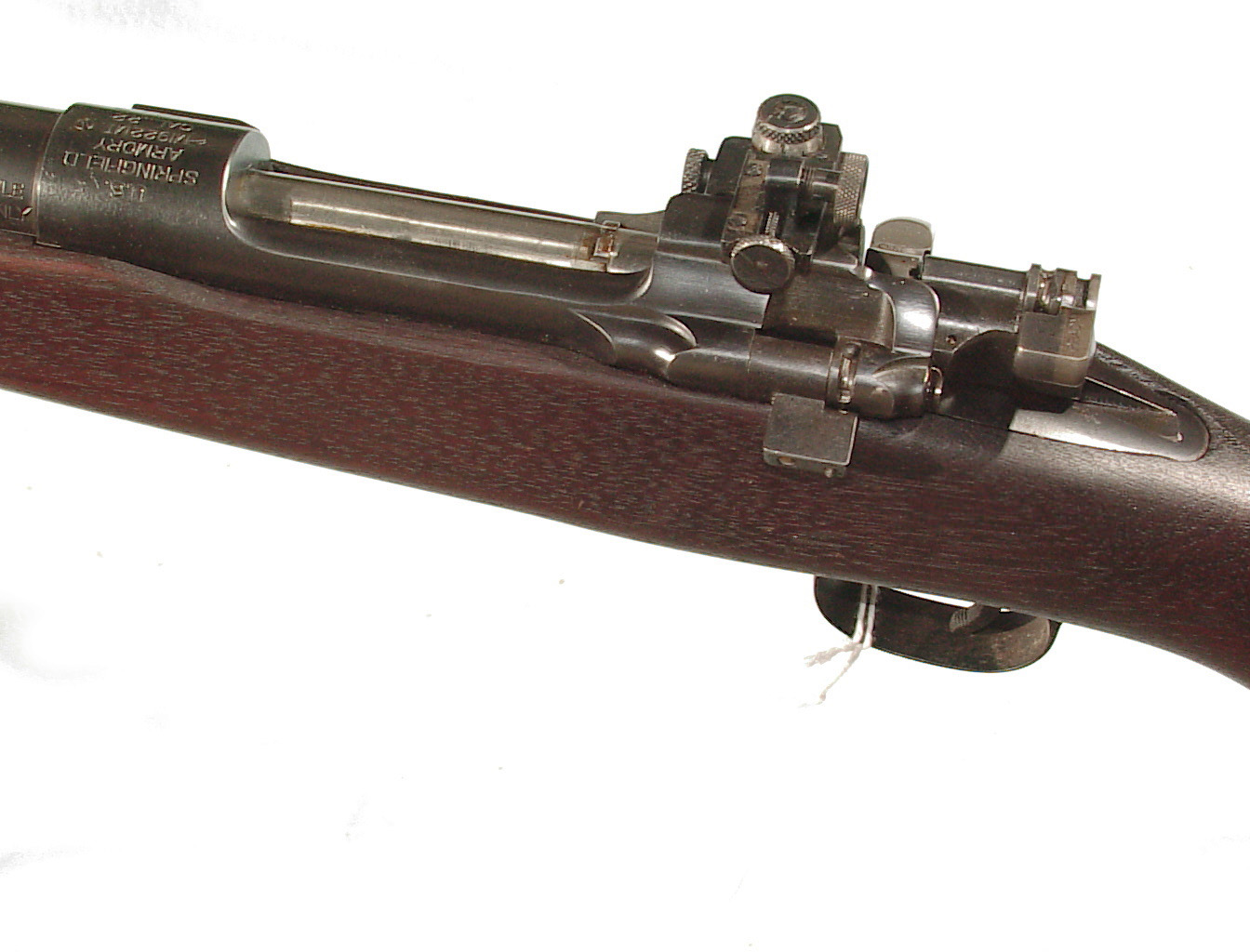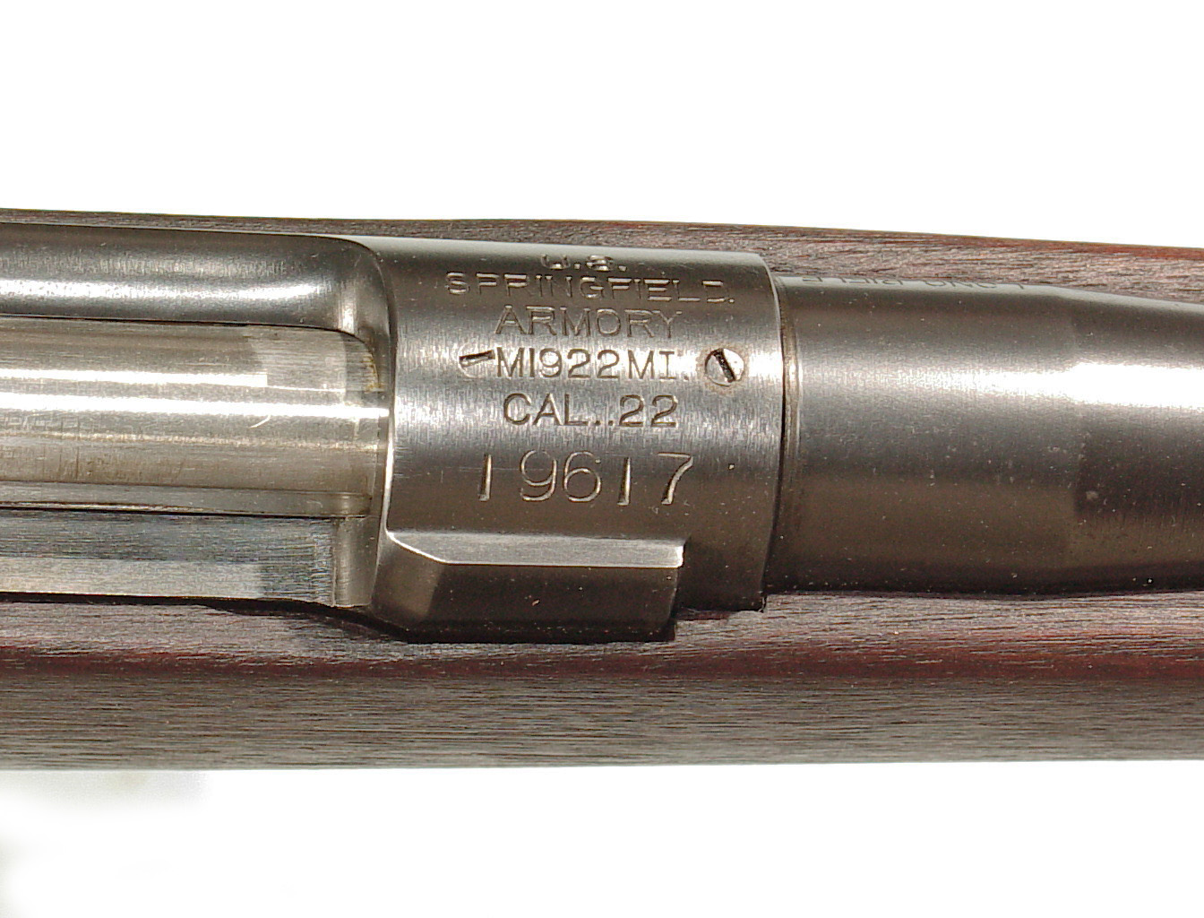 .22 Long rifle caliber, 24 1/2″ barrel dated “3-30” behind the front sight. Bolt action receiver with detachable magazine. Lyman 48 receiver sight w/extra peep. The receiver marked “U.S./SPRINGFIELD/ARMORY/M1922MI/.22CAL” on dthe receiver ring. All parts finished blue. N.R.A. style pistol grip stock lacking the groove in the forward handguard. Correctly drilled and tapped for a scope mount and lacking theknurled bolt cocking piece. Serial numbered etched on the bottom of the bolt. In superb virtually unused original condition. Mint bore.
